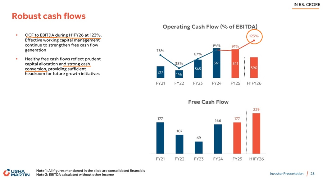 Categories InvestorPresentations Usha Martin: Cash Rope Post author By Raoji Post date November 28, 2025 No Comments on Usha Martin: Cash Rope Source: Investor Presentation of Usha Martin Ltd Share this: Click to share on Facebook (Opens in new window) Facebook Click to share on LinkedIn (Opens in new window) LinkedIn Click to share on X (Opens in new window) X Click to share on WhatsApp (Opens in new window) WhatsApp Click to email a link to a friend (Opens in new window) Email Discover more from Alpha Ideas Subscribe to get the latest posts sent to your email. Type your email… Subscribe ← Bitcoin Returns → Weekend Mega Linkfest: 28 November, 2025 Leave a ReplyYour email address will not be published. Required fields are marked *Comment * Name * Email * Website Notify me of follow-up comments by email. Notify me of new posts by email. Δ