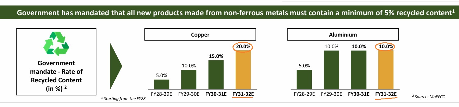 Categories MegaTrends Recyclers Mega Trend: Non Ferrous Recycling Post author By Raoji Post date October 23, 2025 No Comments on Mega Trend: Non Ferrous Recycling Source: Investor Presentation of Jain Resource Recycling Ltd Share this: Click to share on Facebook (Opens in new window) Facebook Click to share on LinkedIn (Opens in new window) LinkedIn Click to share on X (Opens in new window) X Click to share on WhatsApp (Opens in new window) WhatsApp Click to email a link to a friend (Opens in new window) Email